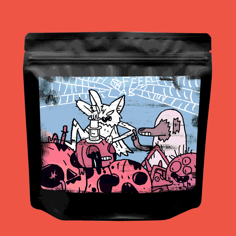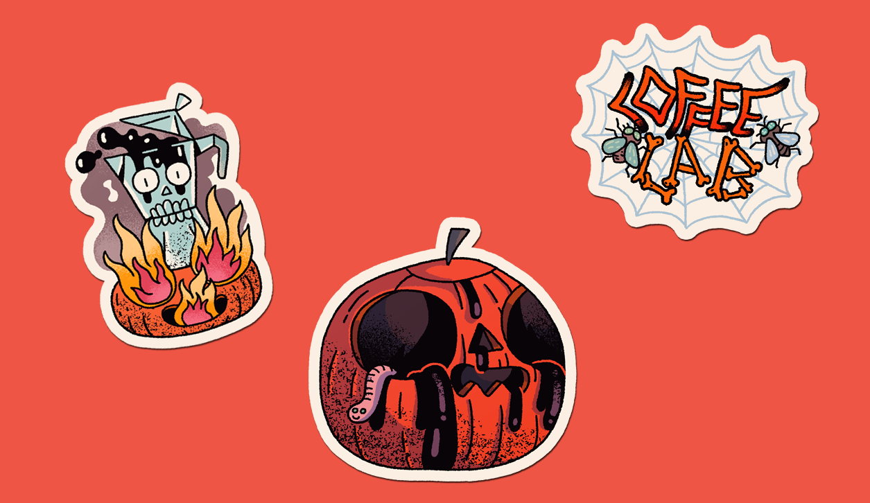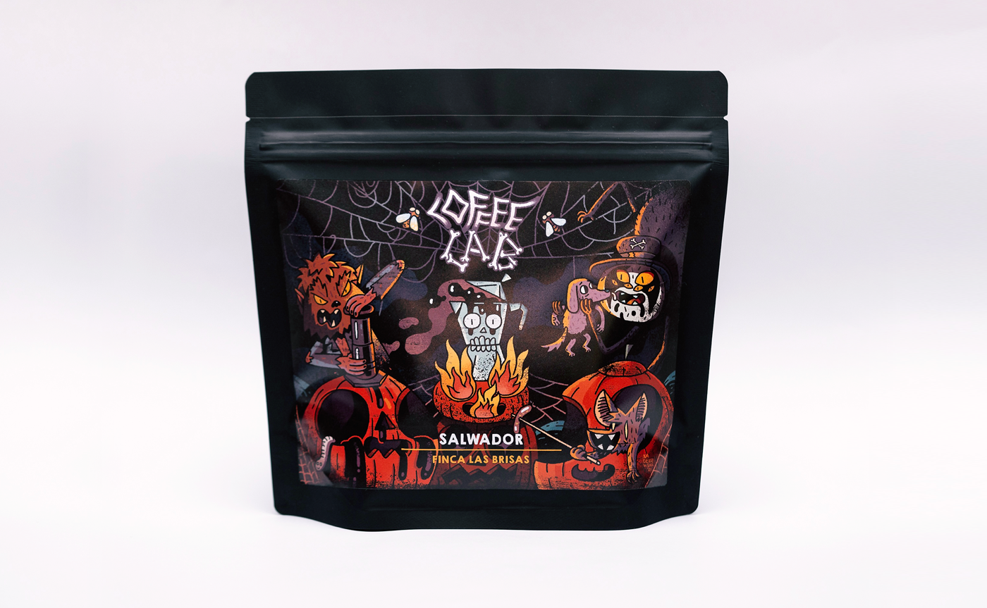 Label, poster and stickers for the Warsaw coffee roasting company CoffeeLab. Halloween edition 2021.